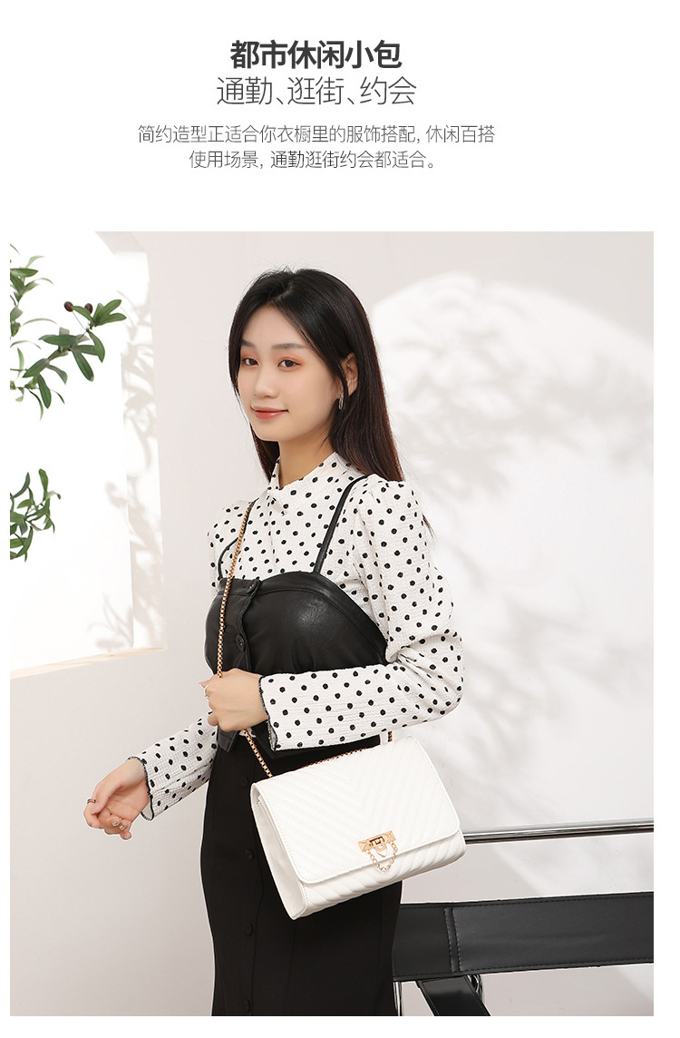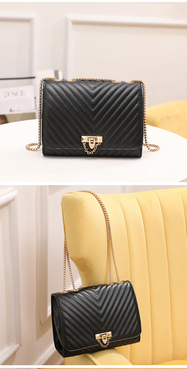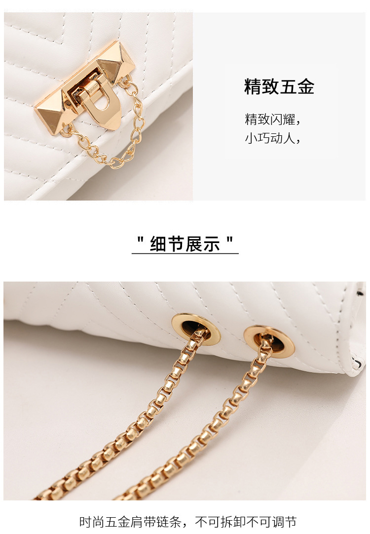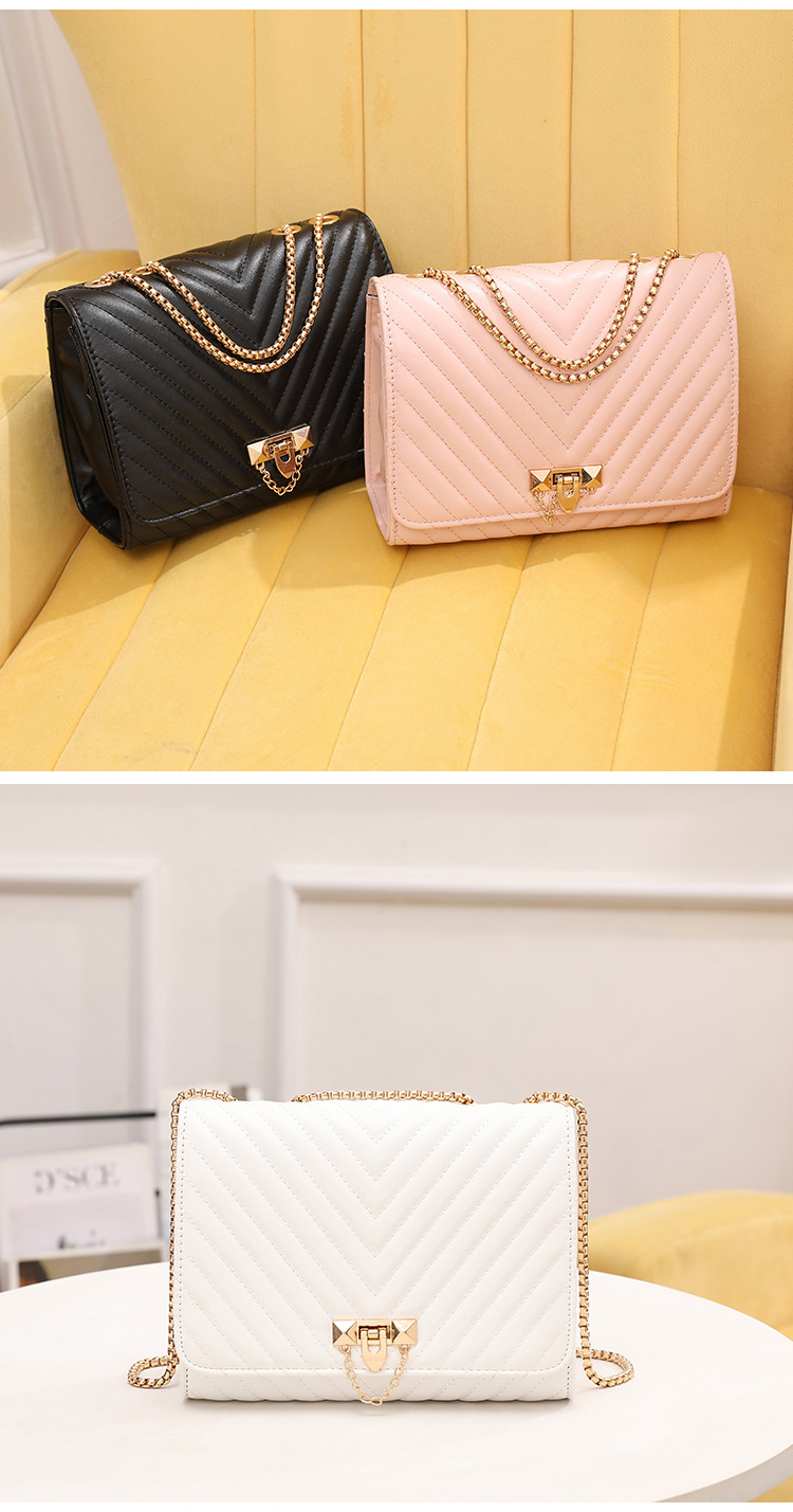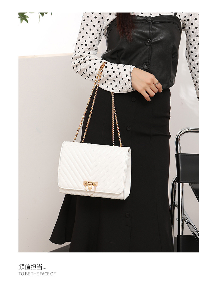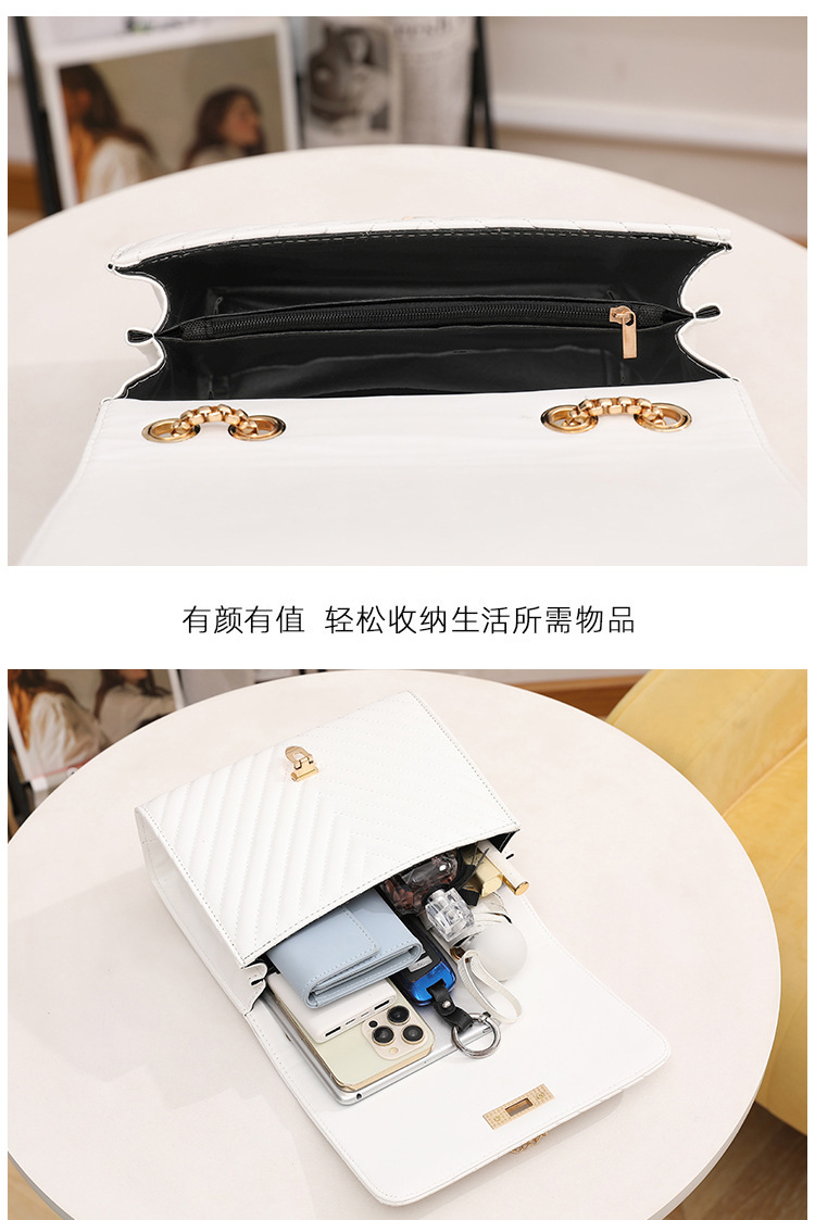 新潮款時尚高級質感菱格紋繡花鎖扣鏈條單肩女包包休閒斜背包