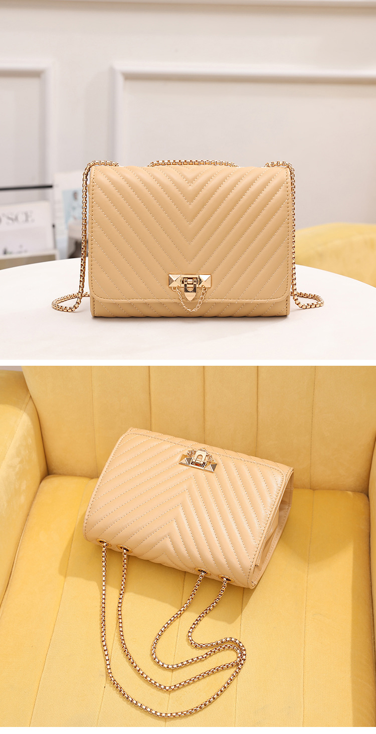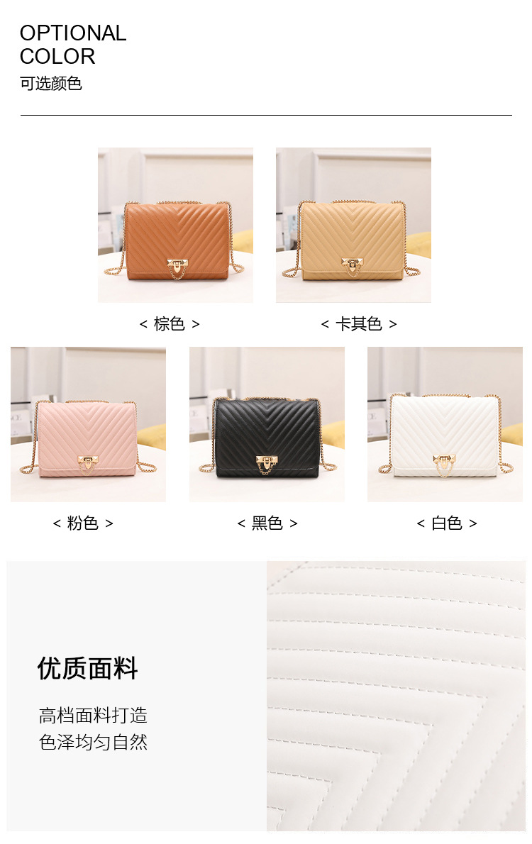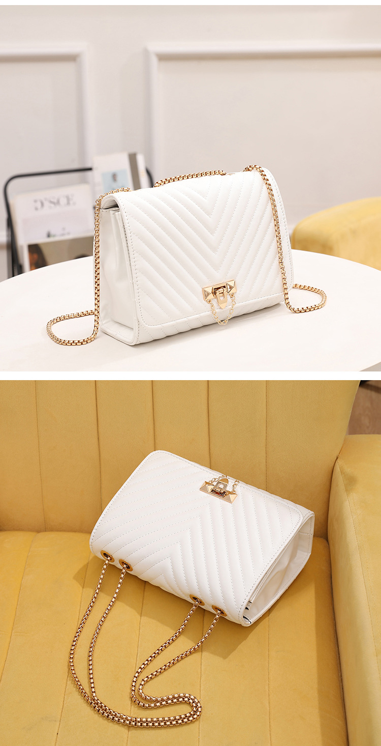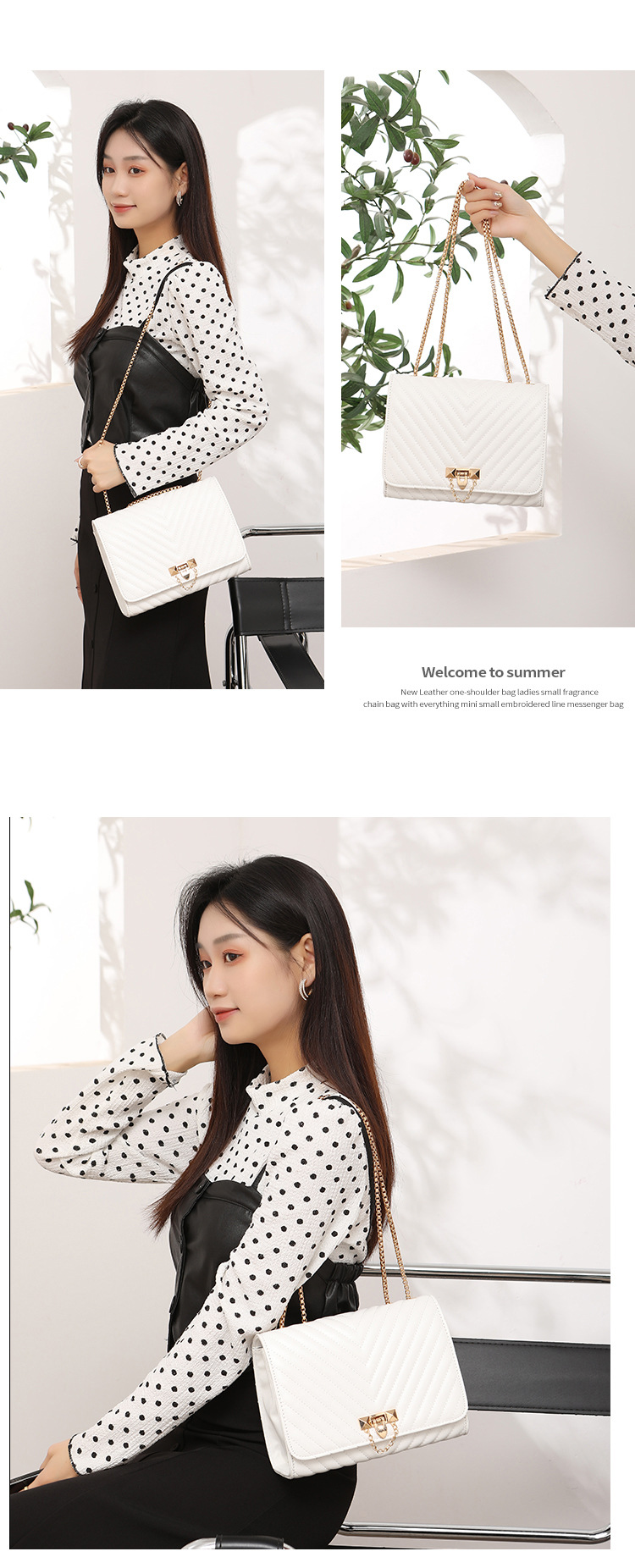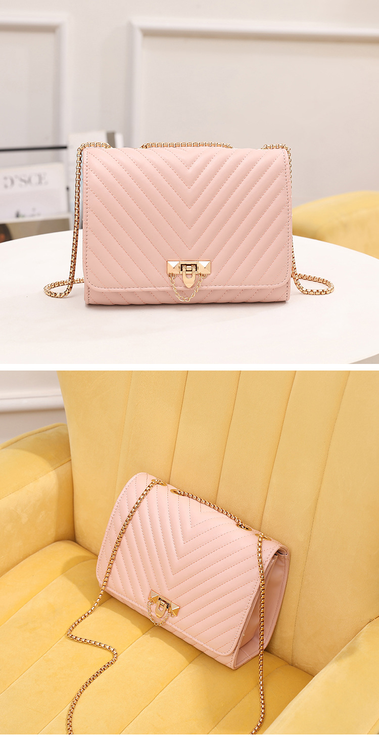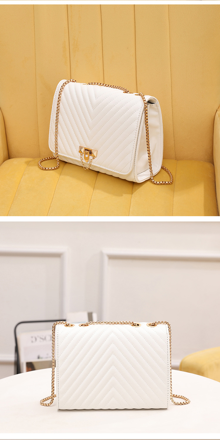新潮款時尚高級質感菱格紋繡花鎖扣鏈條單肩女包包休閒斜背包