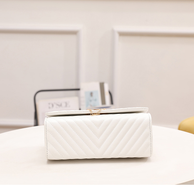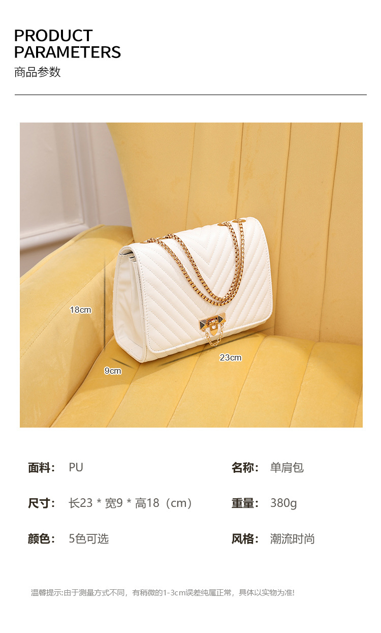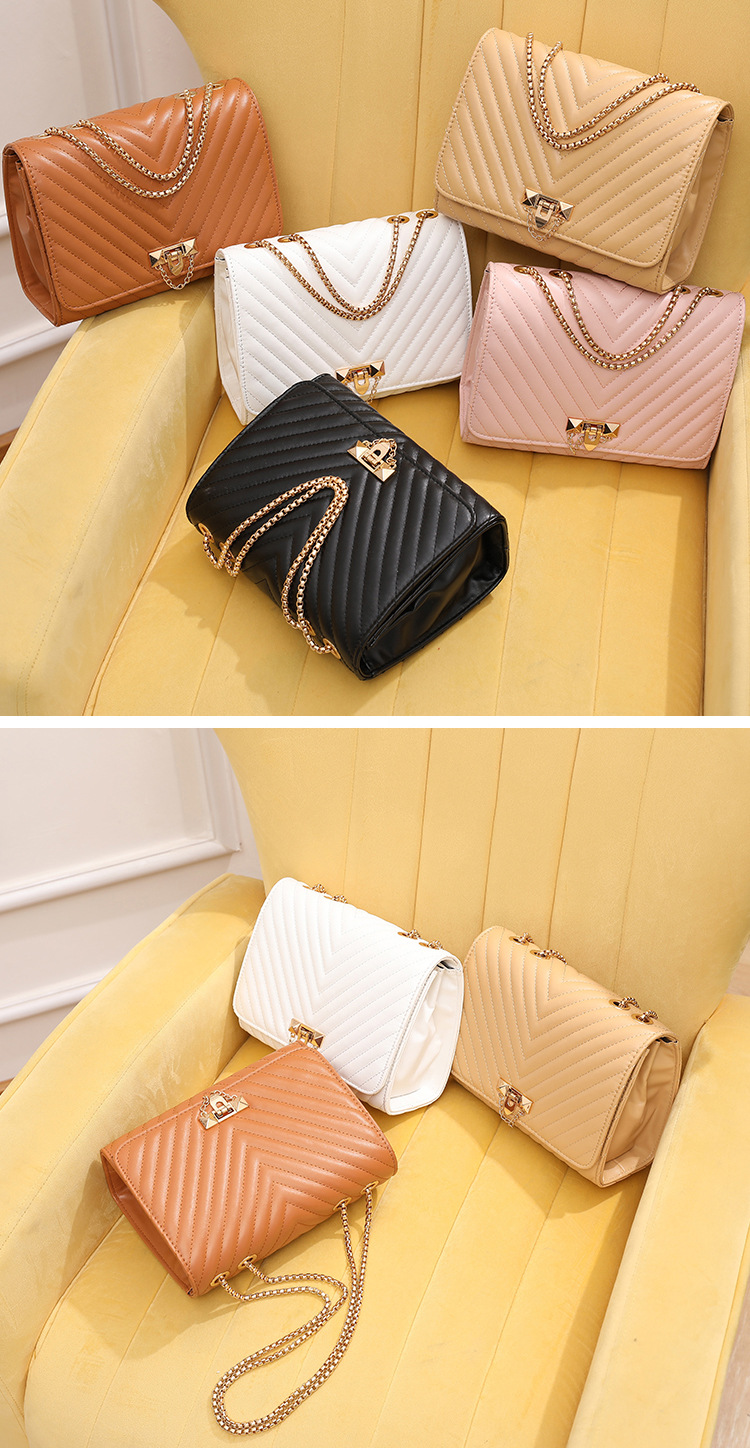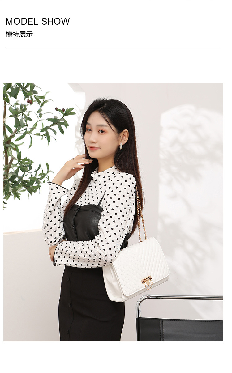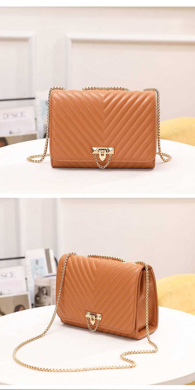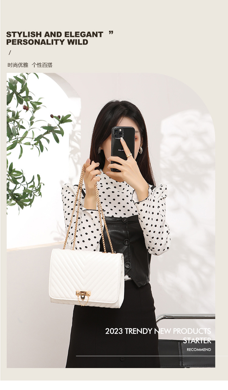 新潮款時尚高級質感菱格紋繡花鎖扣鏈條單肩女包包休閒斜背包